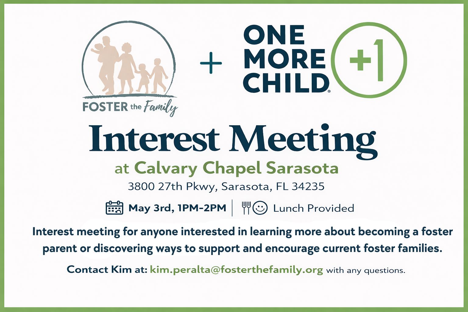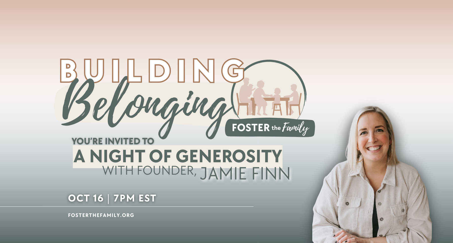 We will watch a 10-15 minute video with a word of encouragement and education from Jamie Finn, founder of Foster the Family, and then break into discussion groups of about 8-10 people.
